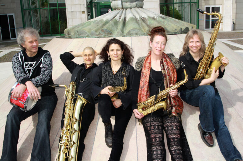 THE TIPTONS SAXOPHONE QUARTET & DRUMS are an internationally renowned all-female saxophone quartet with drums, celebrating over 30 years as a band. Formed in 1988 in Seattle, WA by Seattle Jazz Hall of Fame member Amy Denio (alto sax, clarinet, voice), she is joined by co-leader Jessica Lurie (soprano/alto/ tenor sax,voice), Sue Orfield (tenor sax, voice), Tina Richerson (baritone saxophone, voice), and Robert Kainar (drums,percussion) from Salzburg, Austria.